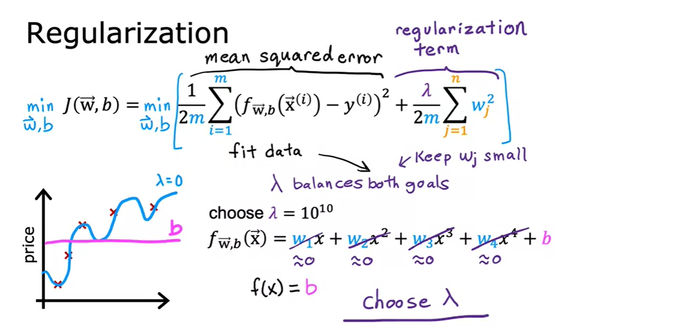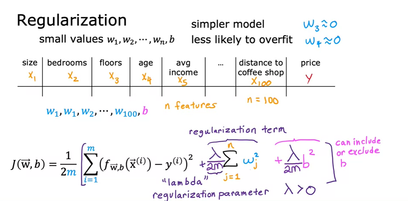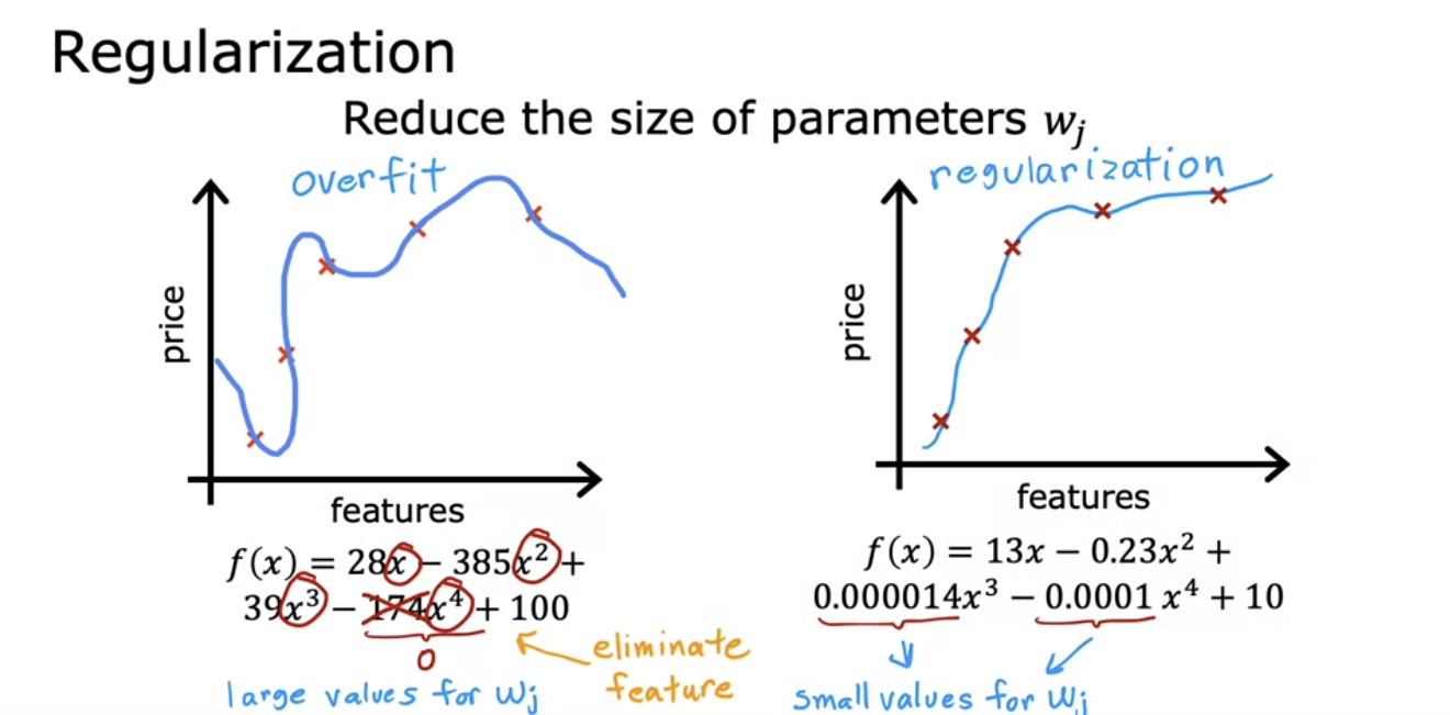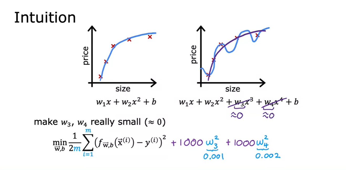 - Cost Function에 저런 항들을 추가시켜서 w3과 w4의 크기에 큰 제약을 줄 수가 있다.