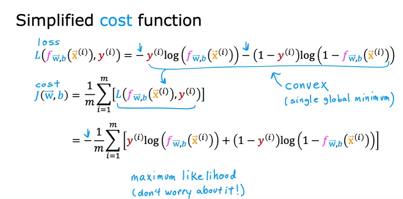 - The cost function is derived from statistics, specifically using the principle of maximum likelihood estimation (MLE)