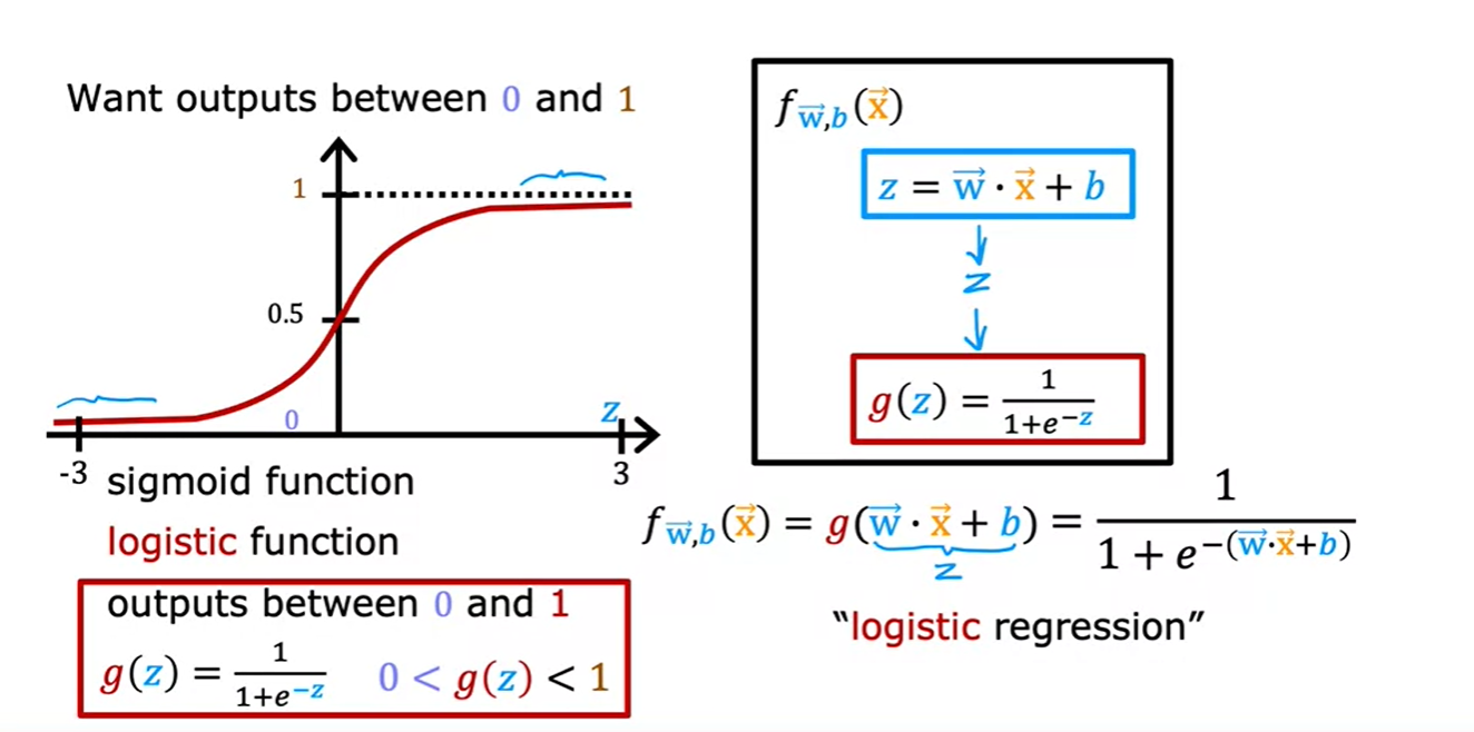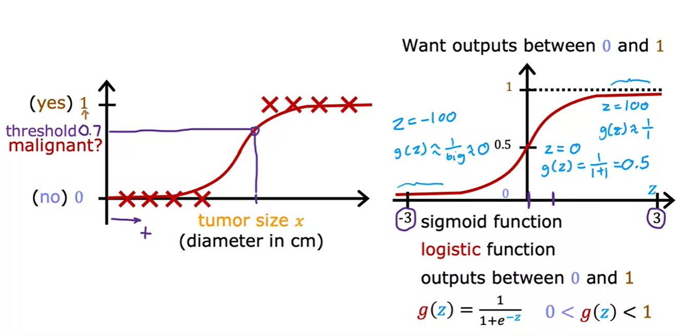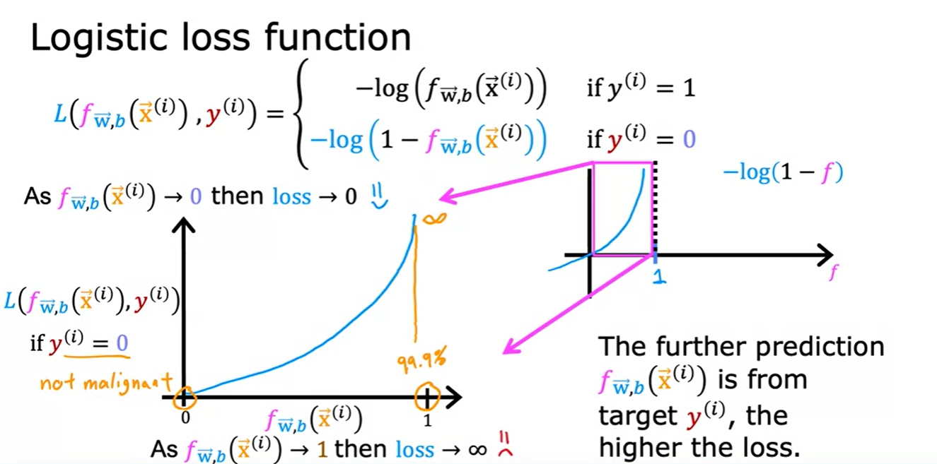 - logistic regression(f)는 0과 1사이의 값만 가지므로 저 핑크 박스 부분만 보면 된다.