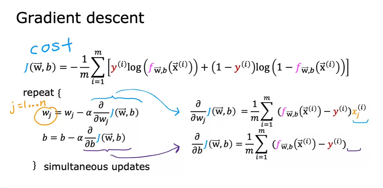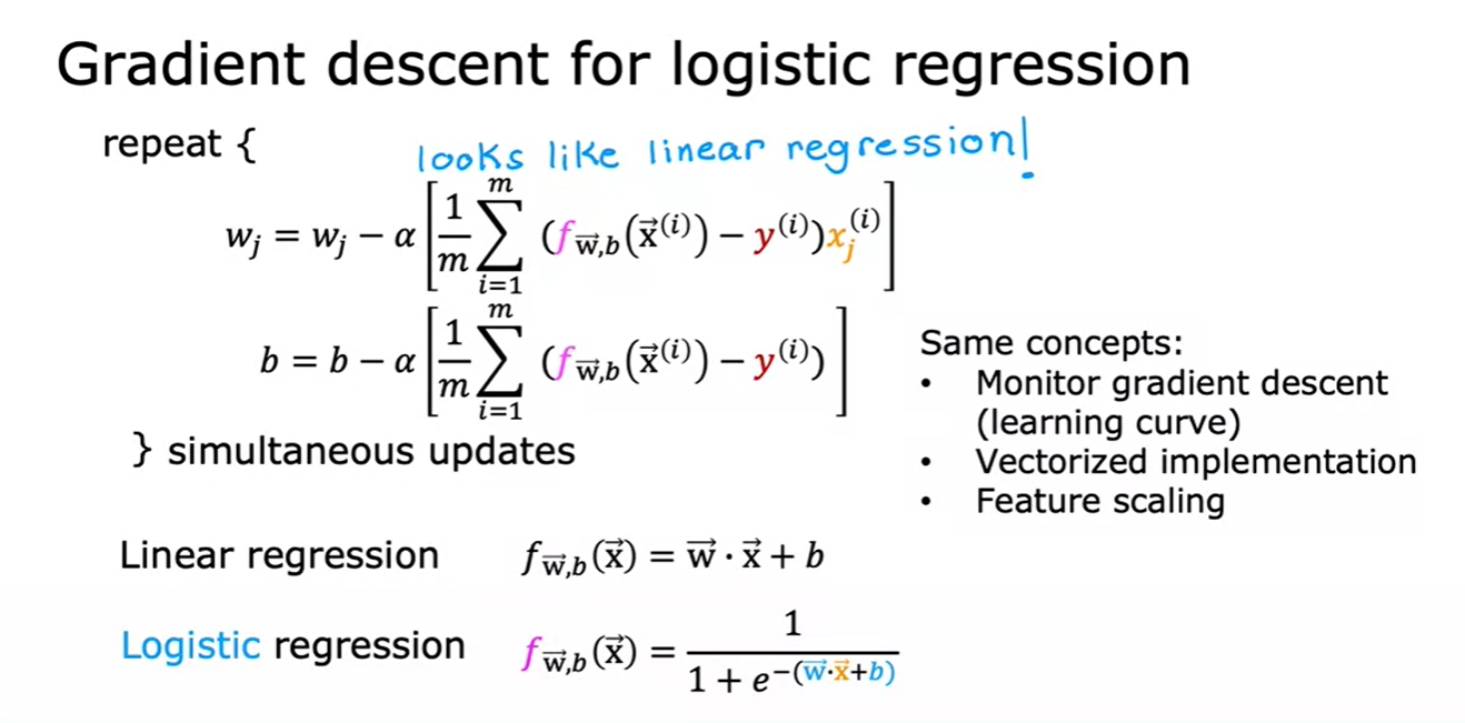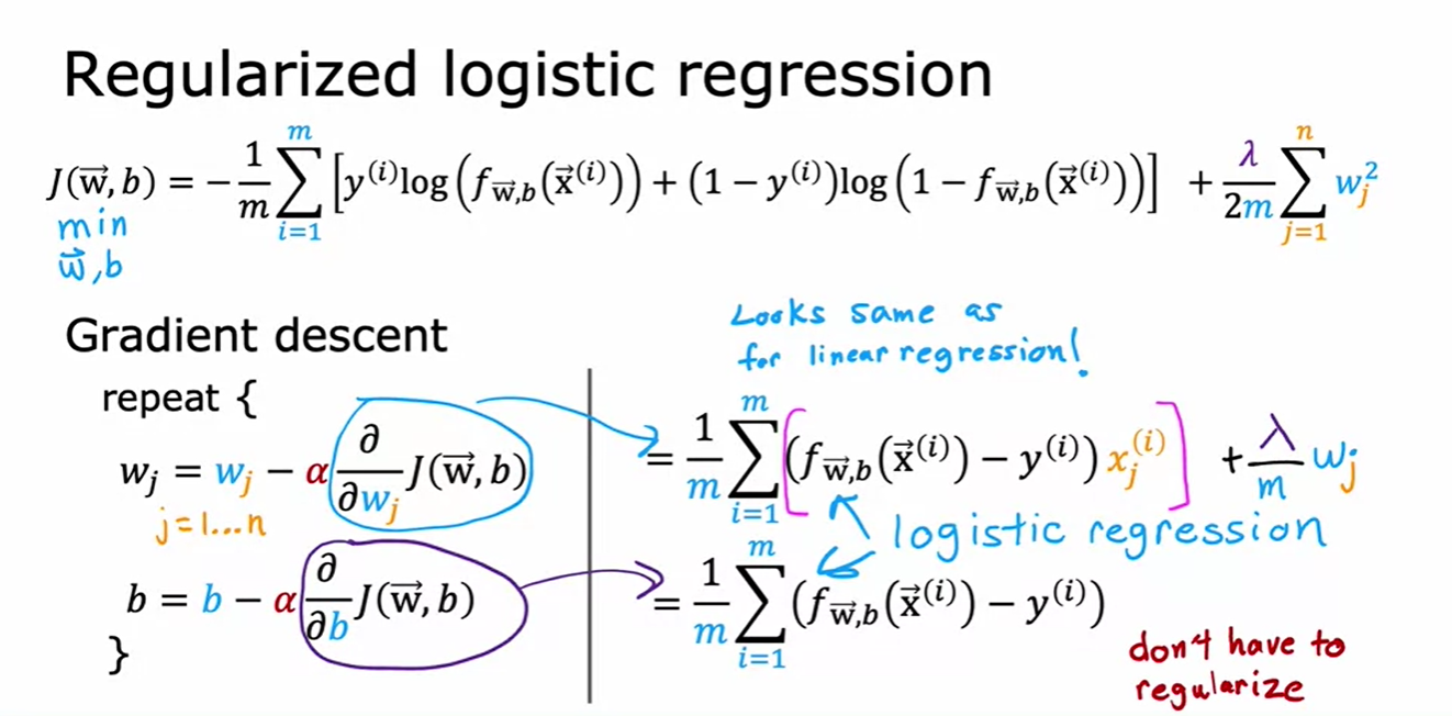 - They look very similar to gradient descent for regularized linear regression, only f(x) is not the same