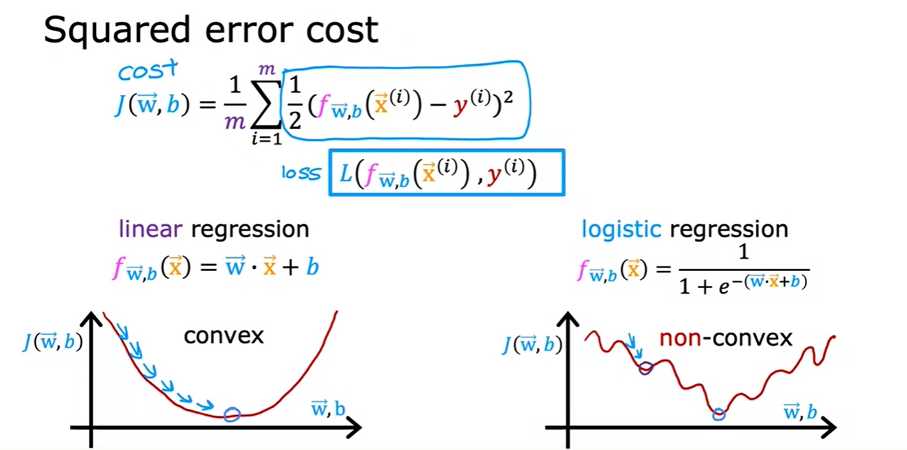 - In Linear regression model, we used squared error cost function and it gave a nice convex shape.