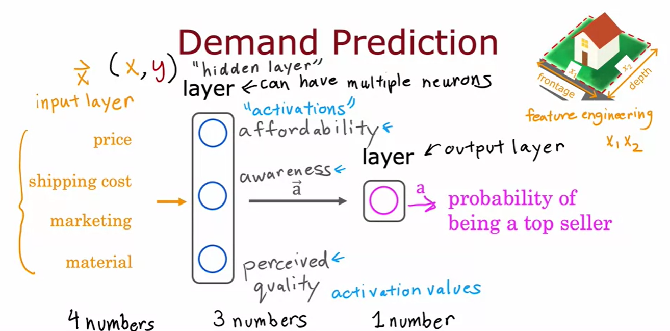 - Intuition: 신경망은 입력 특징을 처리하여 중간 층을 통해 자동으로 유용한 특징을 학습하고 최종 예측을 수행하는 강력한 학습 알고리즘 🚀🚀🚀