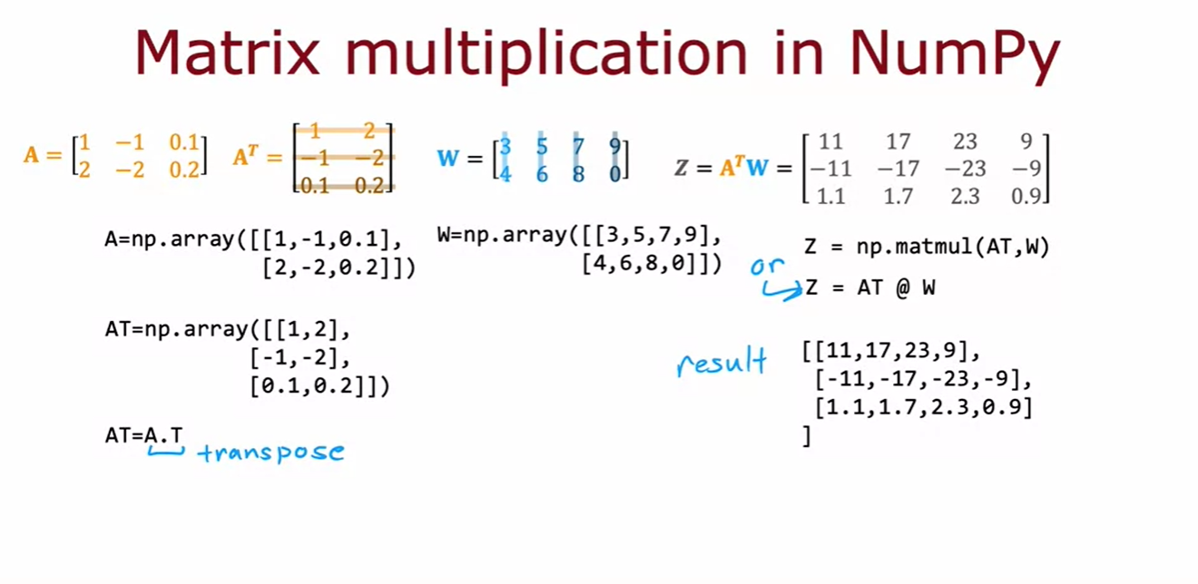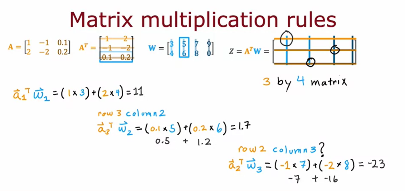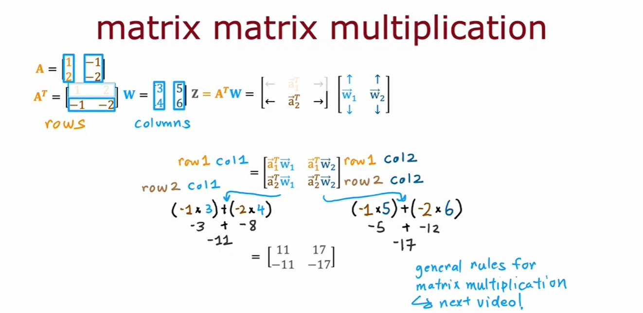 - 즉, a와 w의 내적은 z = a^T * w와 같다. 이는 행렬 곱셈을 이해하는 데 유용하다.