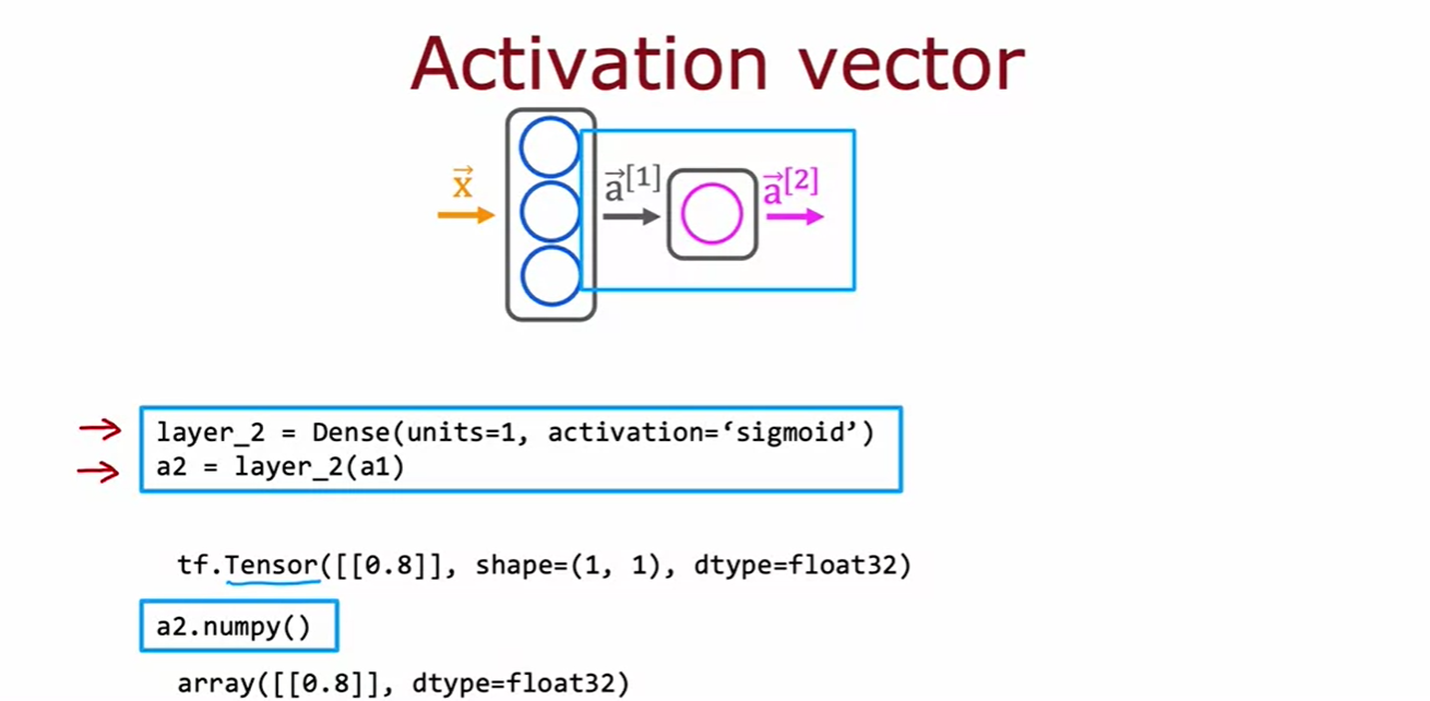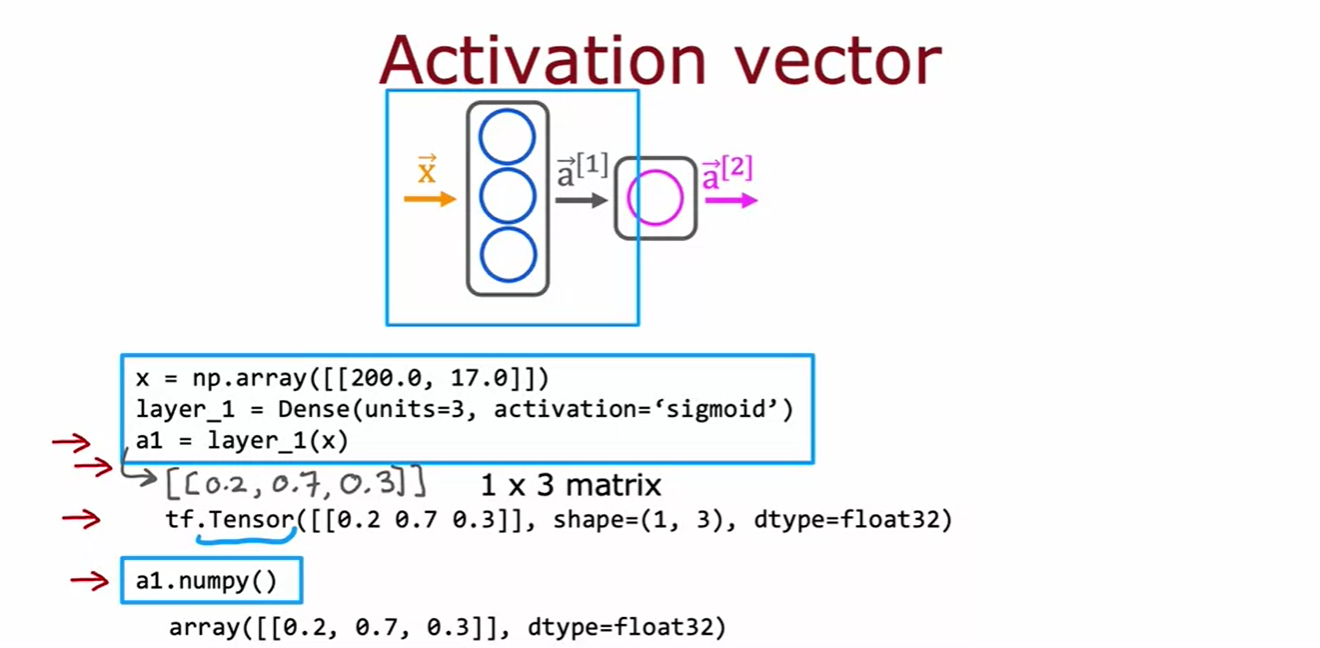 - a1은 layer 1을 x에 적용한 결과로, 1x3 행렬이다.