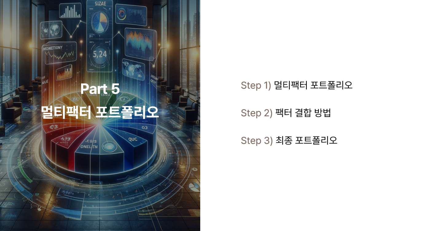 파트 5는 이전 파트에서 간단하게 살펴보고 검증한 팩터들을 조합하여 최종적인 포트폴리오를 만드는 단계입니다.