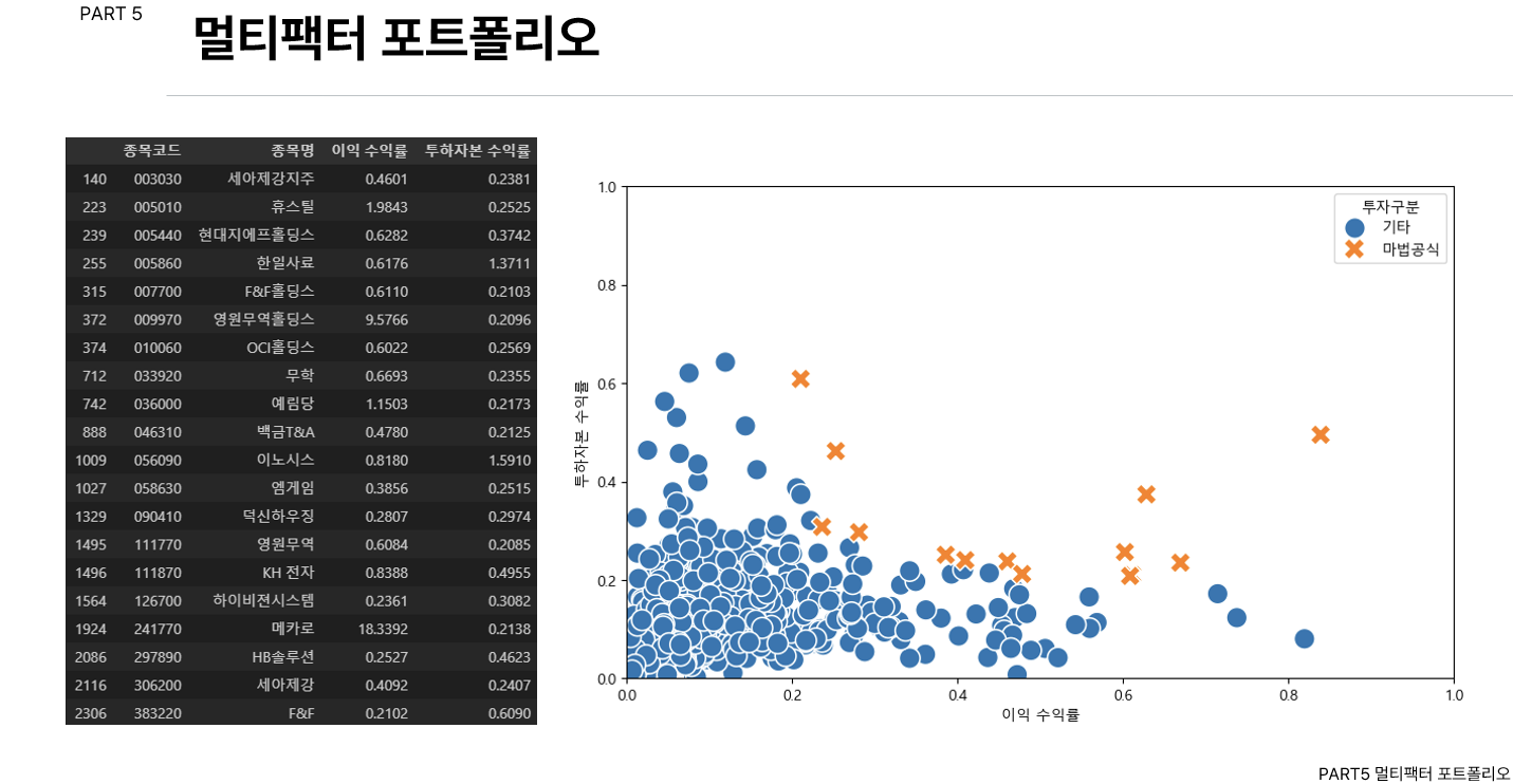 - 이제 재무제표 데이터를 기반으로 국내 시장에서 마법 공식 포트폴리오를 구성해 봅시다!