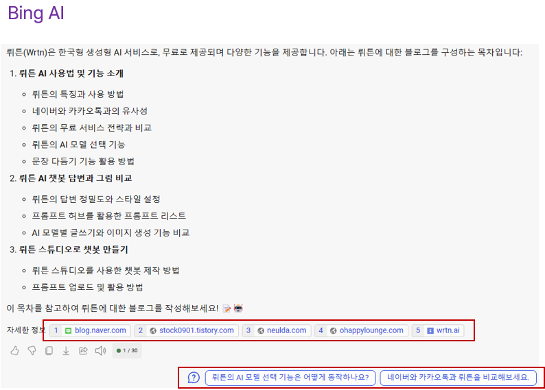 그래서 당시 결과값이 다소 아쉬울 때도 있었지만, 빙AI의 이러한 장점들은 매우 유용했다고 생각했어요.