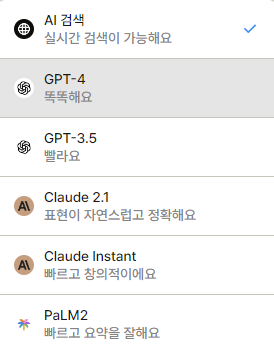 GPT-4말고도 여러 모델이 있는데, AI검색이 상당히 유용하더라고요!
