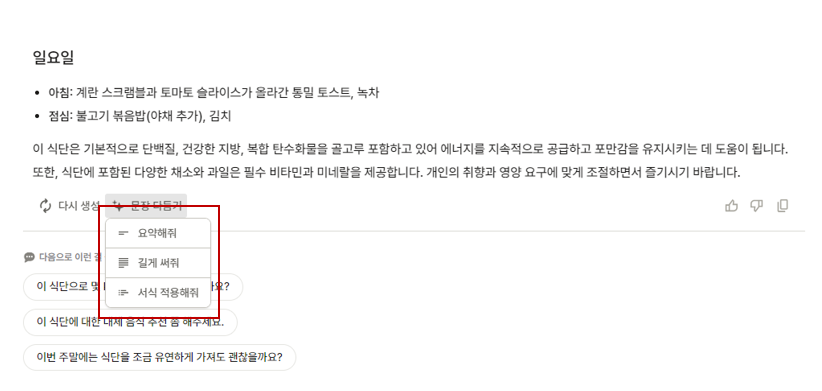 사실 "요약해줘"나 "길게 써줘"와 같은 명령어를 입력하는 것만으로도,