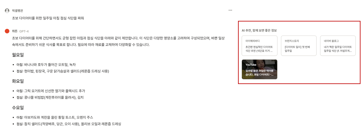 첫째는, AI 추천 및 관련 정보(링크)을 제공한다는 것이에요.
